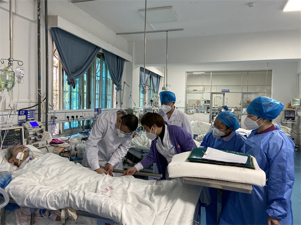 面对患者显著增加带来的救治压力,该院全体干部职工取消周末、节假日,取消轮休,全员坚守岗位。同时,采取分梯次支援策略,打破各临床学科边界,紧急调动非呼吸重症专业的38名医护人员,全力保障广大患者的医疗救治,及时为前沿吃紧科室补位补缺。从各科室选派16名医师组建重症医师梯队、挑选精干的护理人员83名组成重症护理梯队。通过科室培训、远程培训、集中培训等多种方式进行专科技能知识培训,尤其是新冠肺炎诊疗规范、危急重症患者救治的培训,确保患者得到同质化治疗。