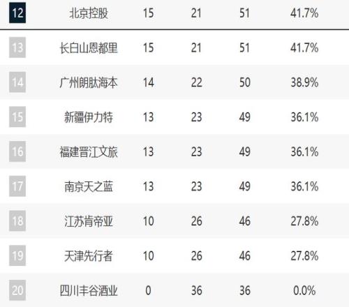 至于江苏、天津,他们肯定都无缘了,因为落后了5个胜场。四川则36连败了。